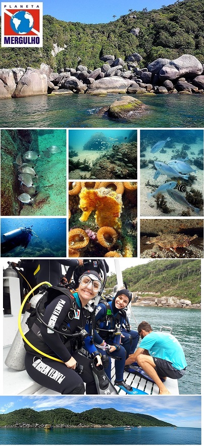 LOCAL DAS SAÍDAS: Praia de PONTA DAS CANAS, norte de Florianópolis. Horário de apresentação na operadora de mergulho as 7h15 nos dois dias.